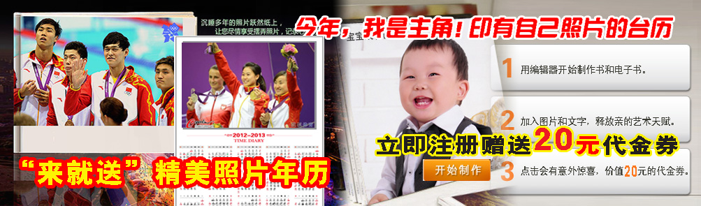 注冊會員就送20元代金券 ,個性定制相冊、微博書、年歷、臺歷
